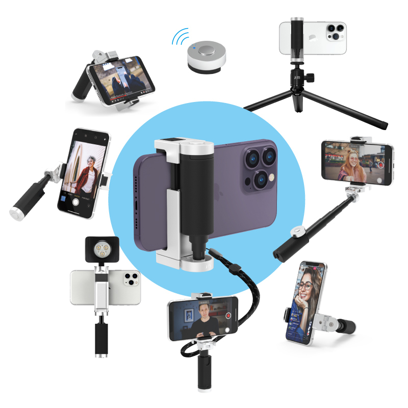 無論任何刁鑽取景角度,都能透過猶如變型金鋼的翻轉握把,一秒將您口袋裡的手機變成最棒的相機,內建藍牙 10 公尺遠端遙控及伸縮自拍桿,輕鬆解決拍照時的各種痛點,酷炫照片再也不難,拍照分享就是這麼簡單!