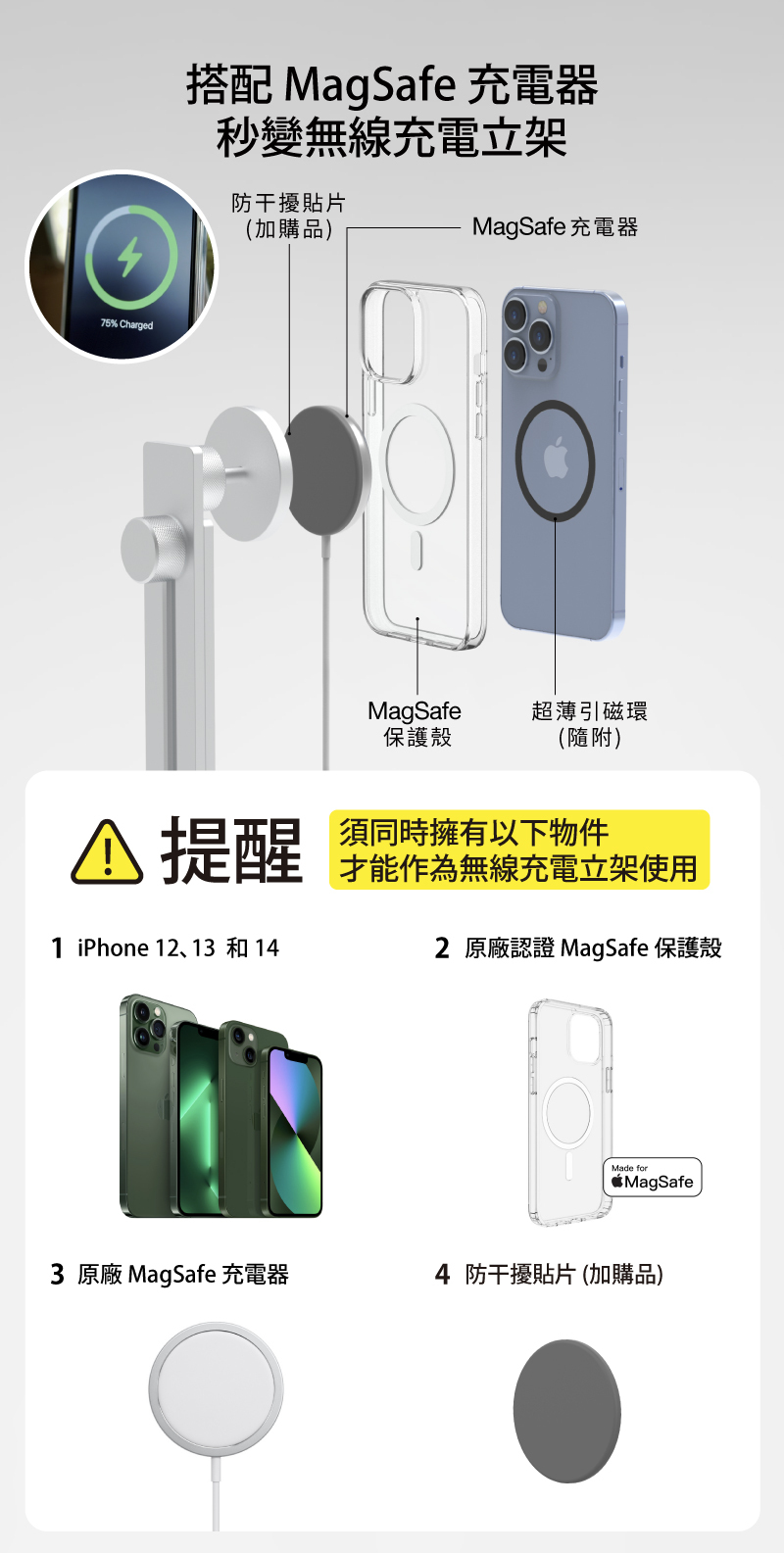 4. 若要將 AluDisc 磁吸立架做為充電立架使用,請務必詳閱產品頁面說明條件。