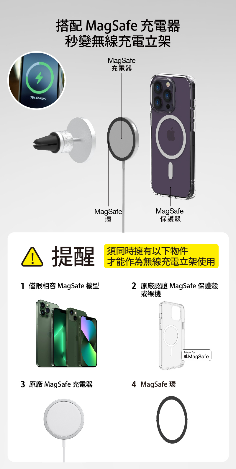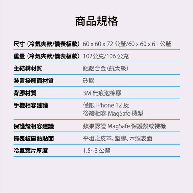 ● 適用 iPhone 12 及後續相容 MagSafe 機型