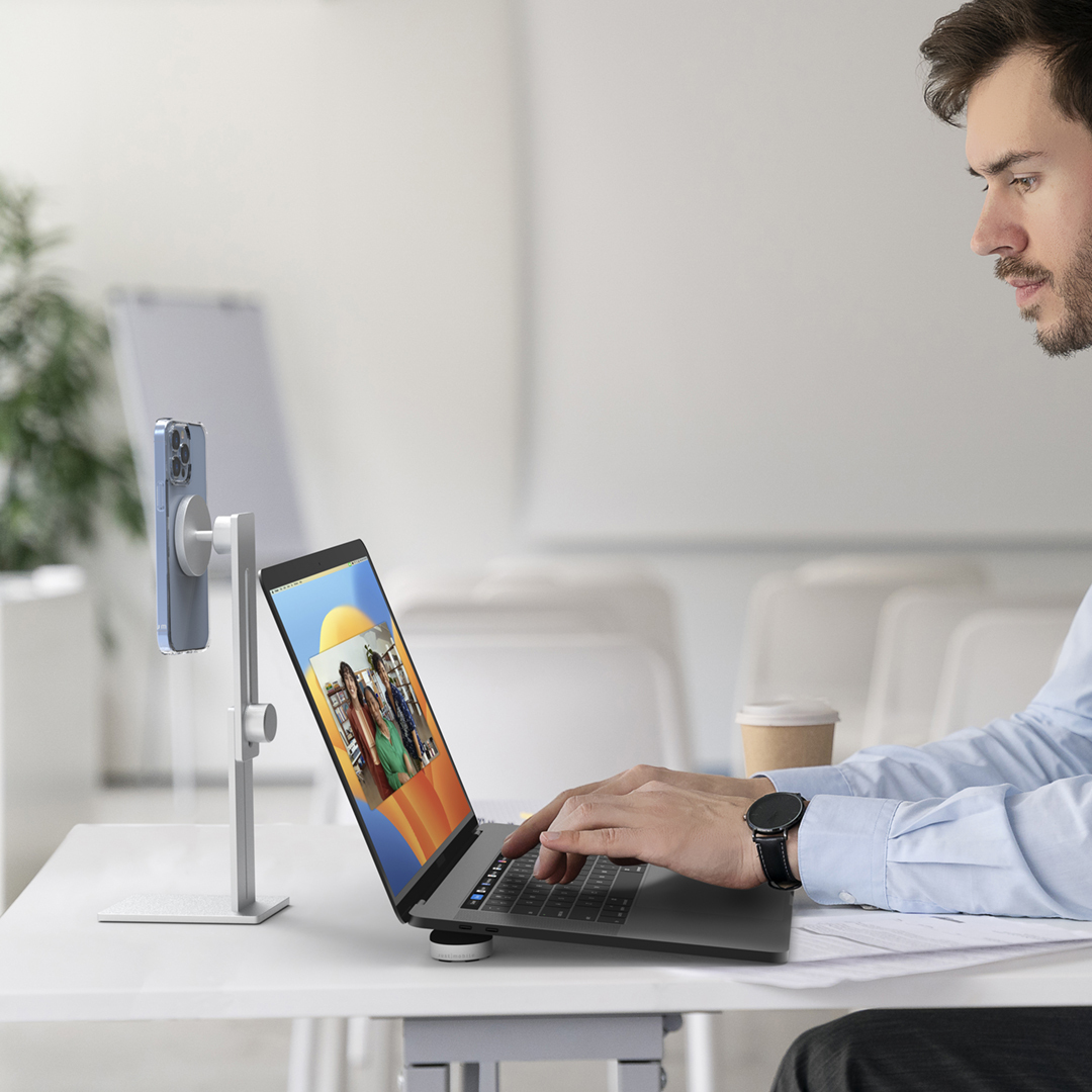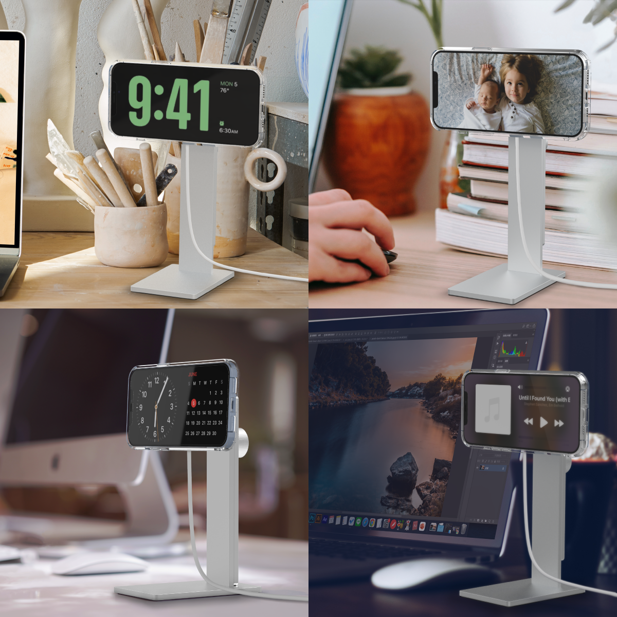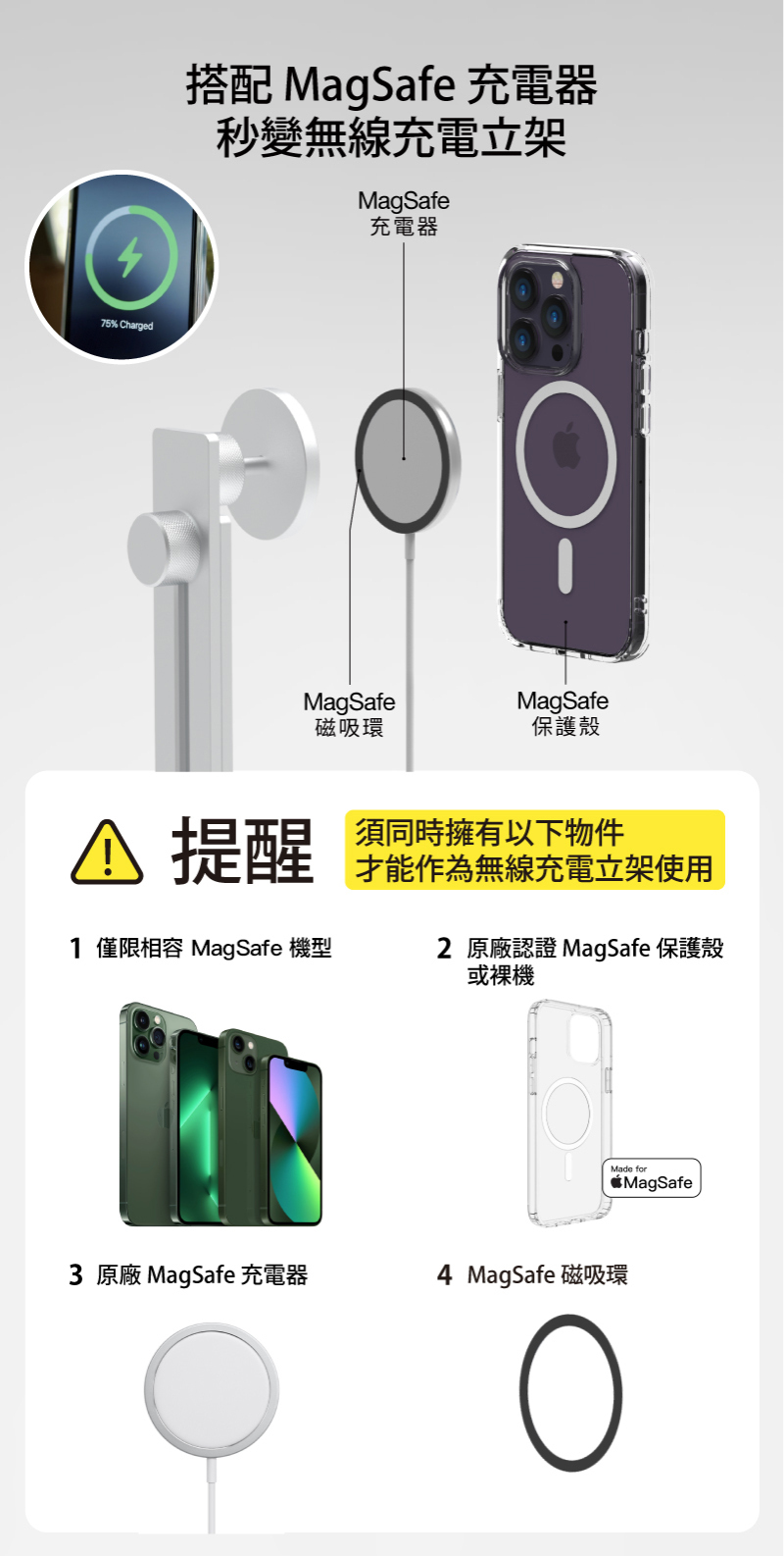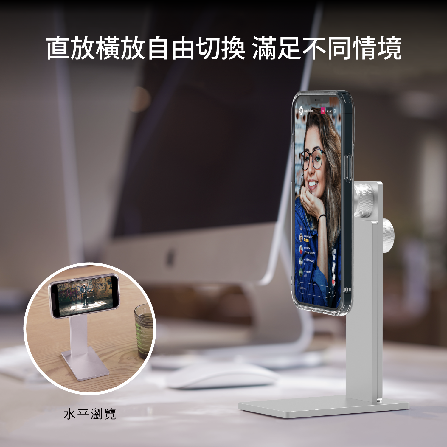 ● 搭配蘋果 MagSafe 充電器*,化身無線充電立架,為 iPhone 12 及後續相容 MagSafe 機型,帶來最佳無線充電體驗