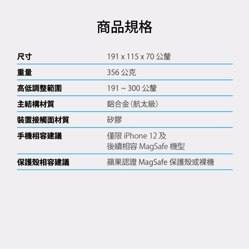 ● 適用 iPhone 12 及後續相容 MagSafe 機型