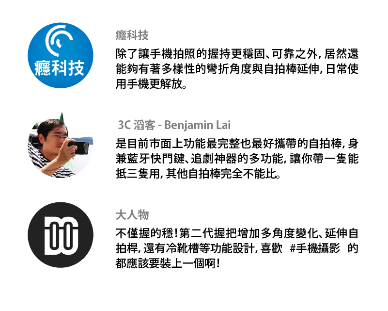 ● 一支抵三支,是握把、是自拍桿、也能當立架 🙌